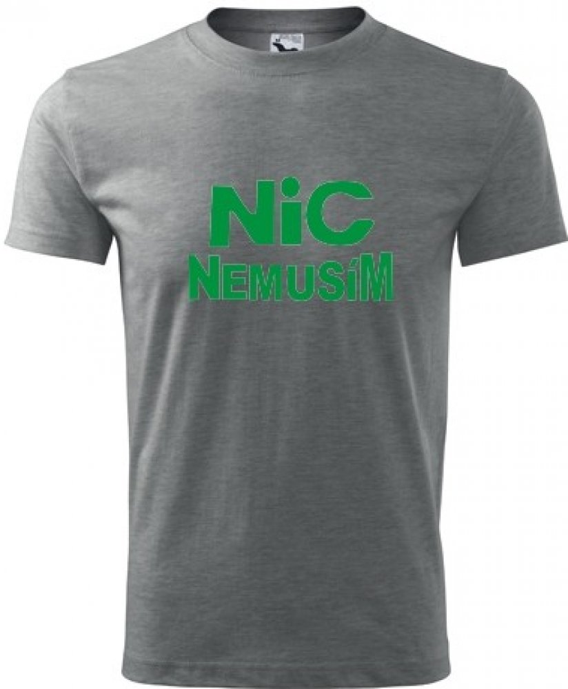 Šedé tričko nic nemusím pánské. nabízené velikosti jsou S,M,L,XL,XXL,XXXL. Výběr z 12ti barev. Tričko patří do kategorií Dárek pro muže k 50, Dárek pro muže k 40, Dárek pro dědečka, Drobné dárky pro kolegy, ,. Technologie potisku: Tisk na tričko je realizován pomocí termolisu a potisk je velice trvanlivý.