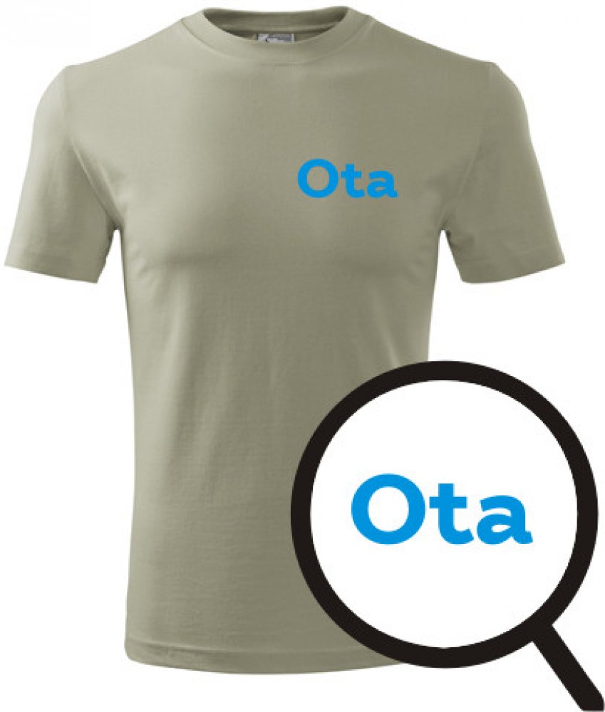 Khaki tričko Ota. nabízené velikosti jsou S,M,L,XL,XXL,XXXL. Výběr z 12ti barev. Tričko patří do kategorií Trička se jménem na hrudi pánská, . Technologie potisku: Tisk na tričko je realizován pomocí termolisu a potisk je velice trvanlivý.