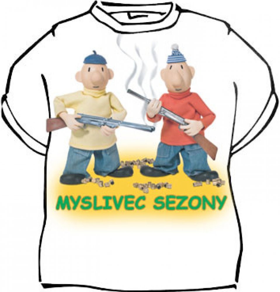 Tričko Myslivec sezony - velikost L je humorné tričko určené všem milovníkům honů. Tričko je bílé barvy, vyrobené je ze 100% bavlny. Na tričku je obrázek dvojice Pat a Mat s brokovnicemi v ruce a nápis "Myslivec sezony". Vynikající a praktický dárek pro každého myslivce.
