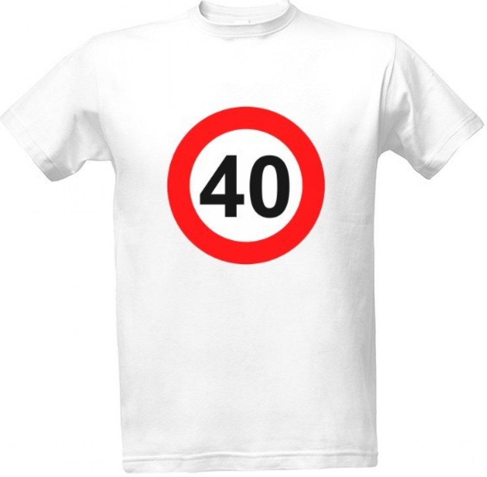 Tričko s potiskem 40 dopravní značka pánské bílá