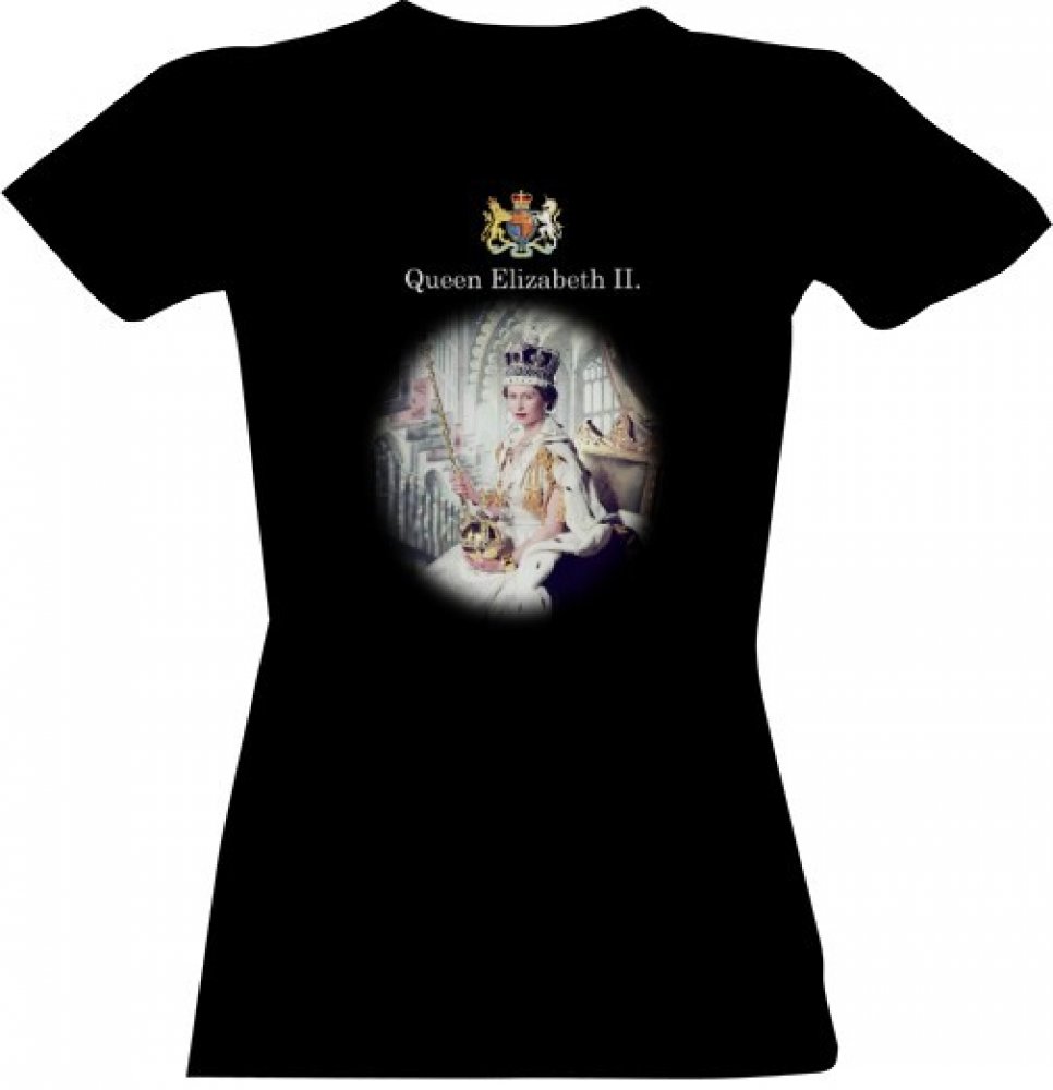 Tričko s potiskem Královna Alžběta II. dámské Černá