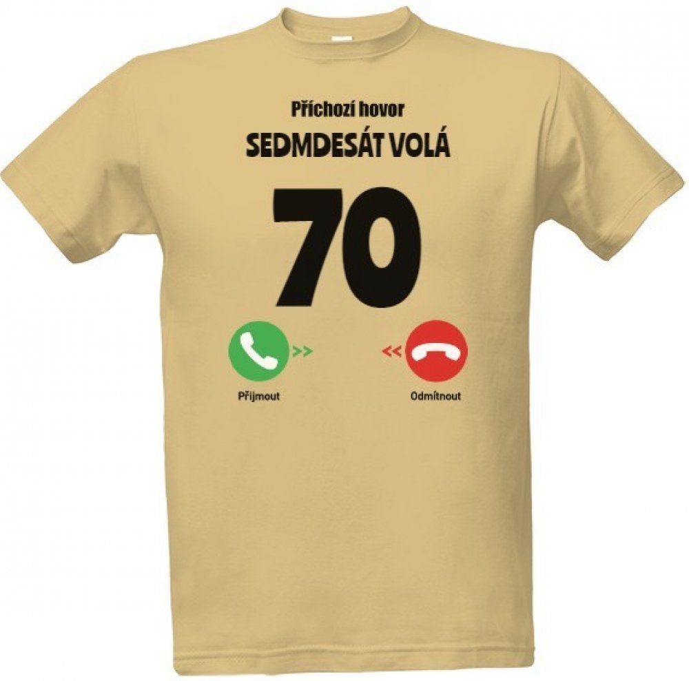Tričko s potiskem Narozeniny volají 70 let černý text pánské písková