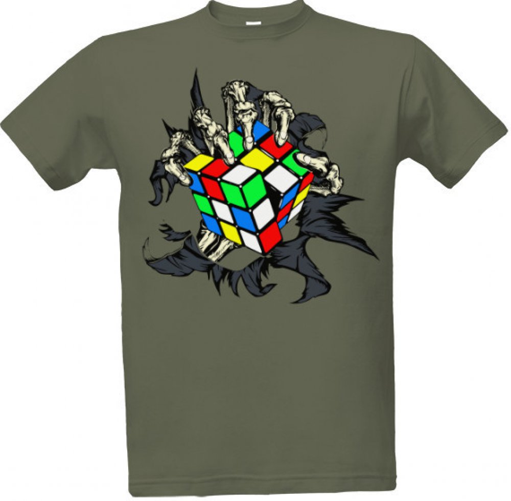 Tričko s potiskem Rubikova kostka 3D pánské khaki