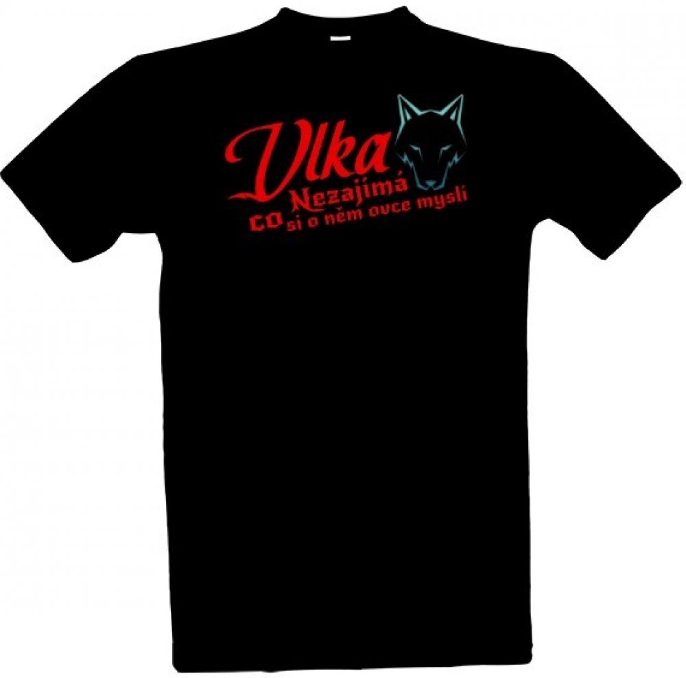 Tričko s potiskem Vlka nezajímá co si ovce myslí pánské černá