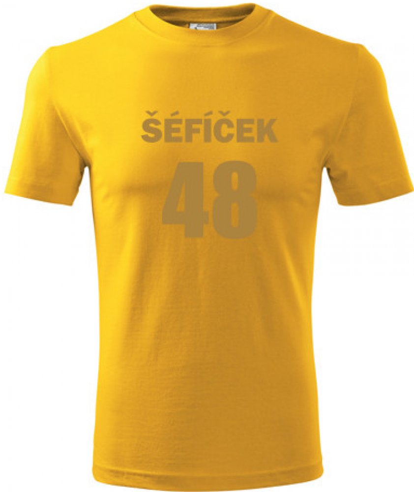 Žluté tričko Šéfíček 48. nabízené velikosti jsou S,M,L,XL,XXL,XXXL. Výběr z 12ti barev. Tričko patří do kategorií Dárek pro muže k 48, . Technologie potisku: Tisk na tričko je realizován pomocí termolisu a potisk je velice trvanlivý.