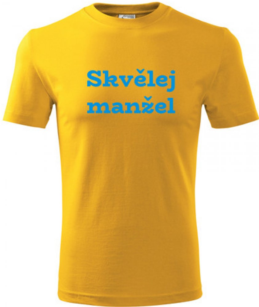 Žluté tričko Skvělej manžel. nabízené velikosti jsou S,M,L,XL,XXL,XXXL. Výběr z 12ti barev. Tričko patří do kategorií Dárek pro manžela, . Technologie potisku: Tisk na tričko je realizován pomocí termolisu a potisk je velice trvanlivý.