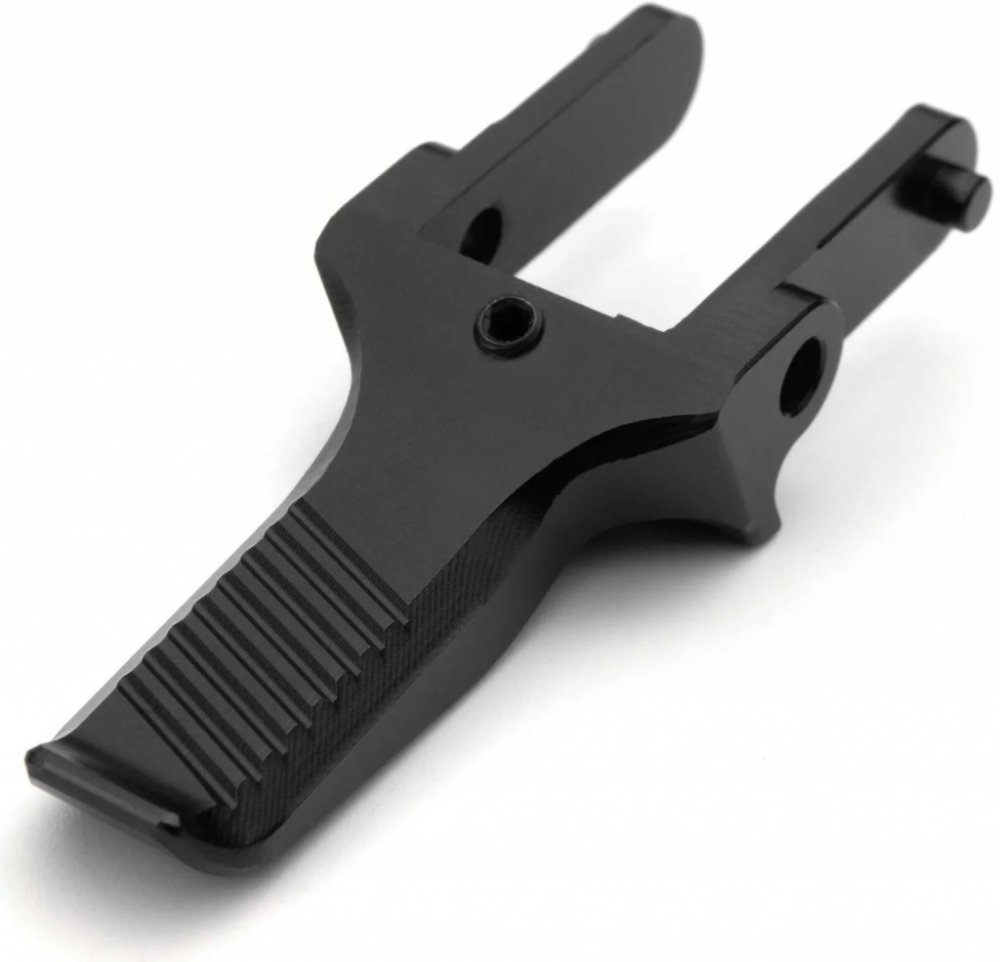 Vyrobená je z jednoho kusu CNC obráběného hliníku 6061, což zajišťuje maximální odolnost a přesnost. Povrchová úprava je provedena eloxováním, přičemž samotná spoušť je opatřena protiskluzovým vroubkováním pro jistější úchop.