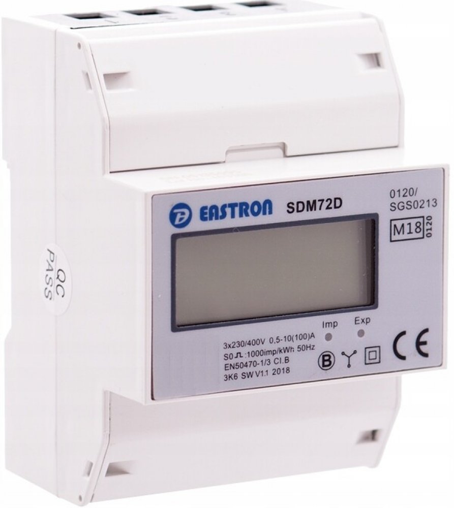 Model SDM72 D – měří a indikuje spotřebu aktivní energie (kWh)
