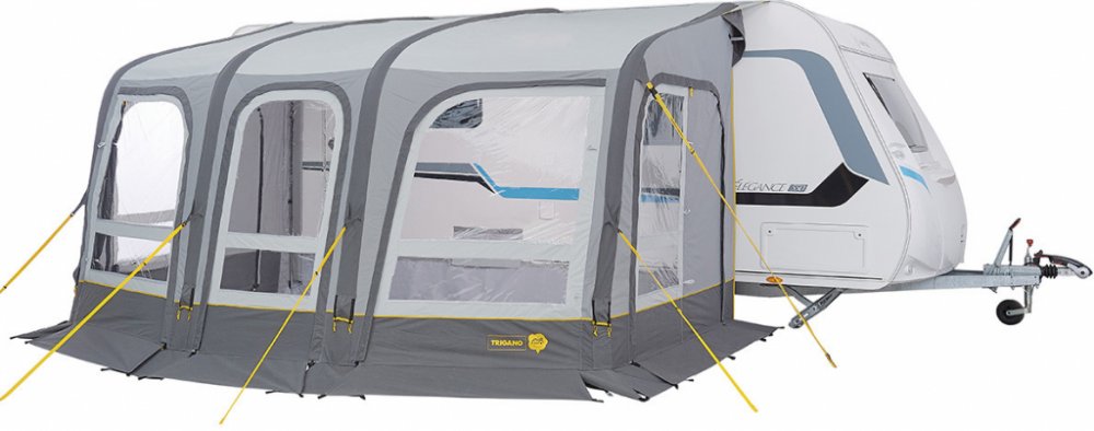 Nafukovací předstan Trigano Lima ke karavanu i dodávkámNafukovací předstan ke karavanu Trigano Lima je nejen elegantní, ale i velmi praktické řešení, kterým můžete rozšířit obytný prostor karavanu. Jeho originální design rotundovitého tvaru dovoluje maximální využití prostoru. Čelní i boční stěny lze odepnout a přeměnit tak předstan v otevřenou letní verandu/altánek. Velká okna poskytují nerušený panoramatický výhled do okolní krajiny. Integrované moskytiéry zajišťují dobrou cirkulaci vzduchu a chrání vnitřek předstanu před hmyzem. Plátno předstanu je pevné, prodyšné a odolné vůči povětrnostním vlivům. Dovnitř karavanu se Vám může hodit některý z koberců od značky Trigano. Pokud si potřebujete ověřit správné měření velikostí, můžete využít náš článek: Jak naměřit délku pro stan ke karavanu.Klíčové vlastnosti předstanu Trigano Lima:Jednoduché nafouknutí konstrukce přes jeden ventil.Robustní bouřkové popruhy.Postranní ventilační průduchy.Moskytiéry ve dveřích.Čelní odnímatelný panel (LIMA 410).2 teleskopické přítlačné tyče.Výkonná ruční pumpa se zabudovaným manometrem.Parametry předstanu Trigano Lima:materiál rámu: termo polyuretan 0,30 mm + potah z polyesteru Oxford 600Dstřešní tkanina: polybavlna Ripstop 260 g/m²průměr rámu: 100 mmprůměr tyče: 7 mminstalační výška: 235 – 250 cmrozměry (Š x H): 300 x 290 cm / 410 x 290 cmhmotnost: 29/36 kgbarva: šedáVideo:
