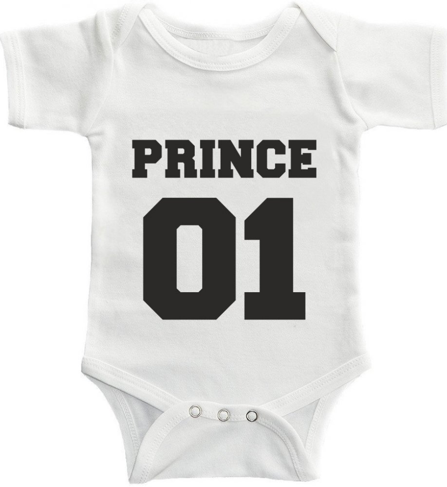 Roztomilé dětské BODY pro chlapečka s potiskem PRINCE 01. Na výběr v černém i bílém provedení a 4 barvy potisku.