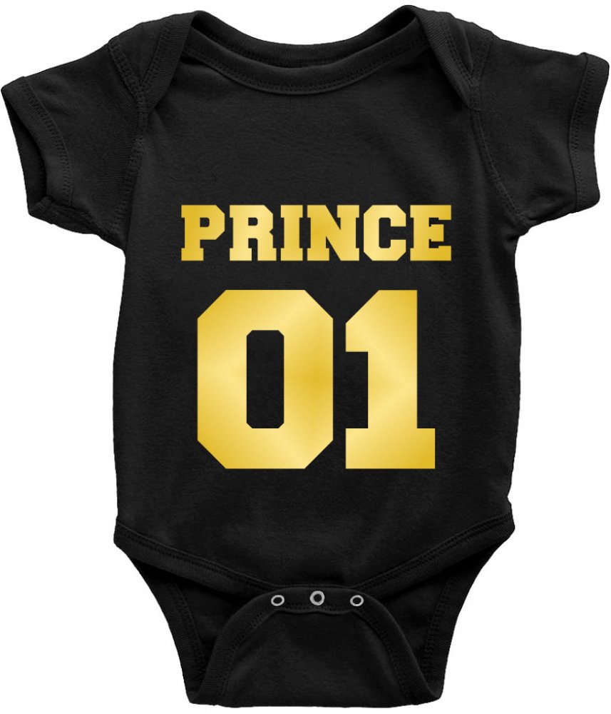 Roztomilé dětské BODY pro chlapečka s potiskem PRINCE 01. Na výběr v černém i bílém provedení a 4 barvy potisku.