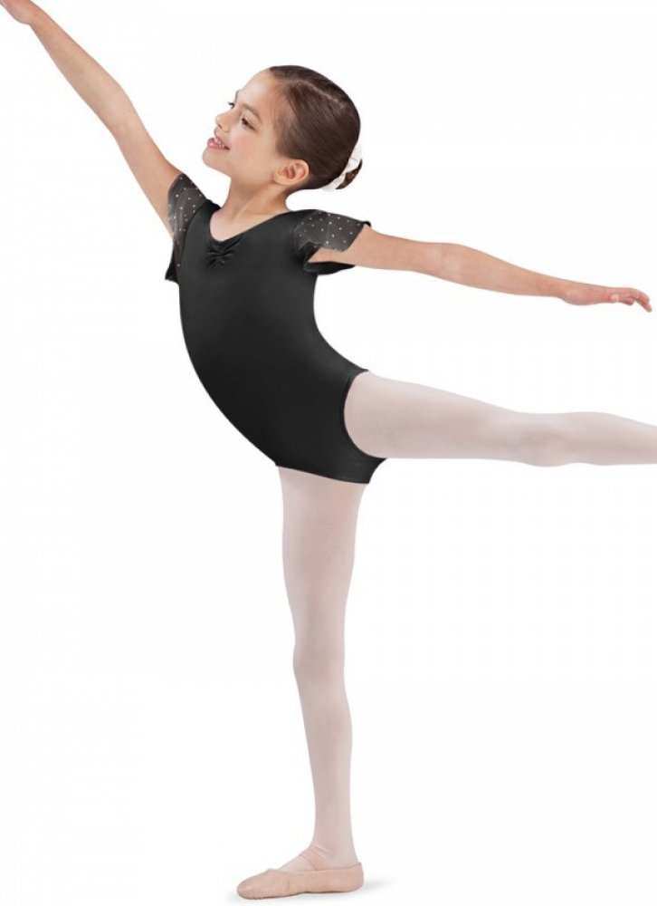 Dívčí trikot s žoržetovými rukávky a třpytkovým zdobením. Velmi oblíbený model.
