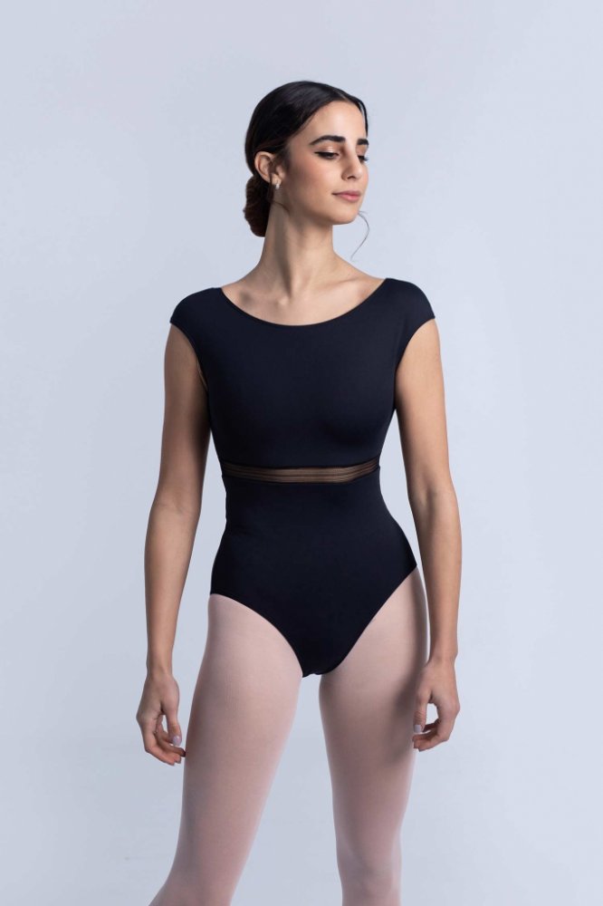 Dámský trikot s krátkými rukávy, zdobený pružnou stuhou v pase (připomínající našívací gumu na baletní špičky) a síťovinou. Trikot je z kolekce značky Intermezzo 2022. Velmi oblíbený model, jeden z nejprodávanějších fashion trikotů.