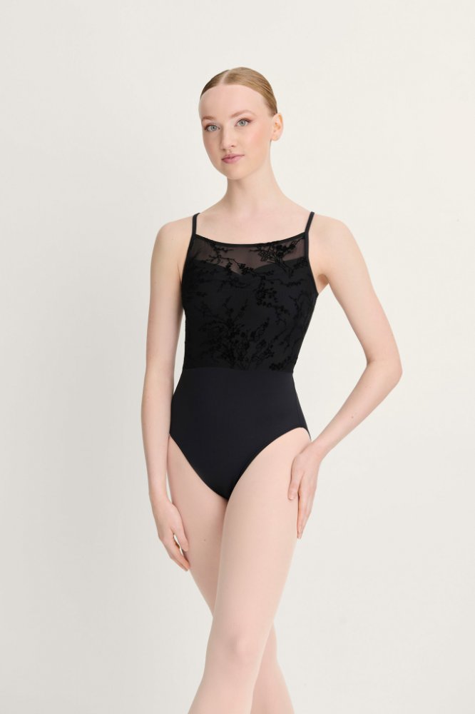 Baletní trikot se síťovinou, se špagetovými ramínky a zajímavě řešenými zády. Dostupný ve čtyřech barevných kombinacích.
