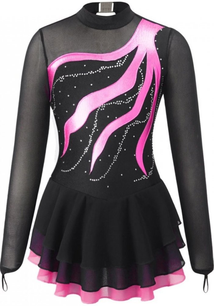 Krásné krasobruslařské šaty Flash s dlouhým rukávem a zajímavou aplikací s flitry na přední části.