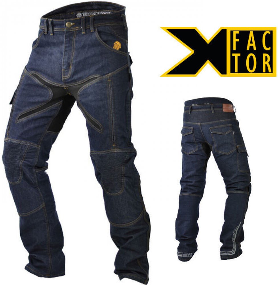 Džíny Probut X-Factor jsou vyrobeny z 12,5 oz Cordura® denimu s Coolmax® vlákny, který je odolný proti oděru. Materiál Cordura® denim je čtyřikrát pevnější než standardní denim se stejnou gramáží. Impaktní zóny na kolenech, bocích a zadní straně stehen jsou navíc podšity velkými panely z aramidových vláken vyrobených z materiálu Kevlar® od společnosti DuPont ™. Celkově to znamená dvojitou odolnost proti oděru. Bezpečnost při nárazu zajistí chrániče s úrovní ochrany CE level 2 na kolenech a bocích. Kolenní chrániče je možné vložit do kapes k tomu určených pomocí externích vstupů na zip. Trojitý vnější šev podtrhuje důraz na bezpečnost u kalhot Probut X-Factor jeans.