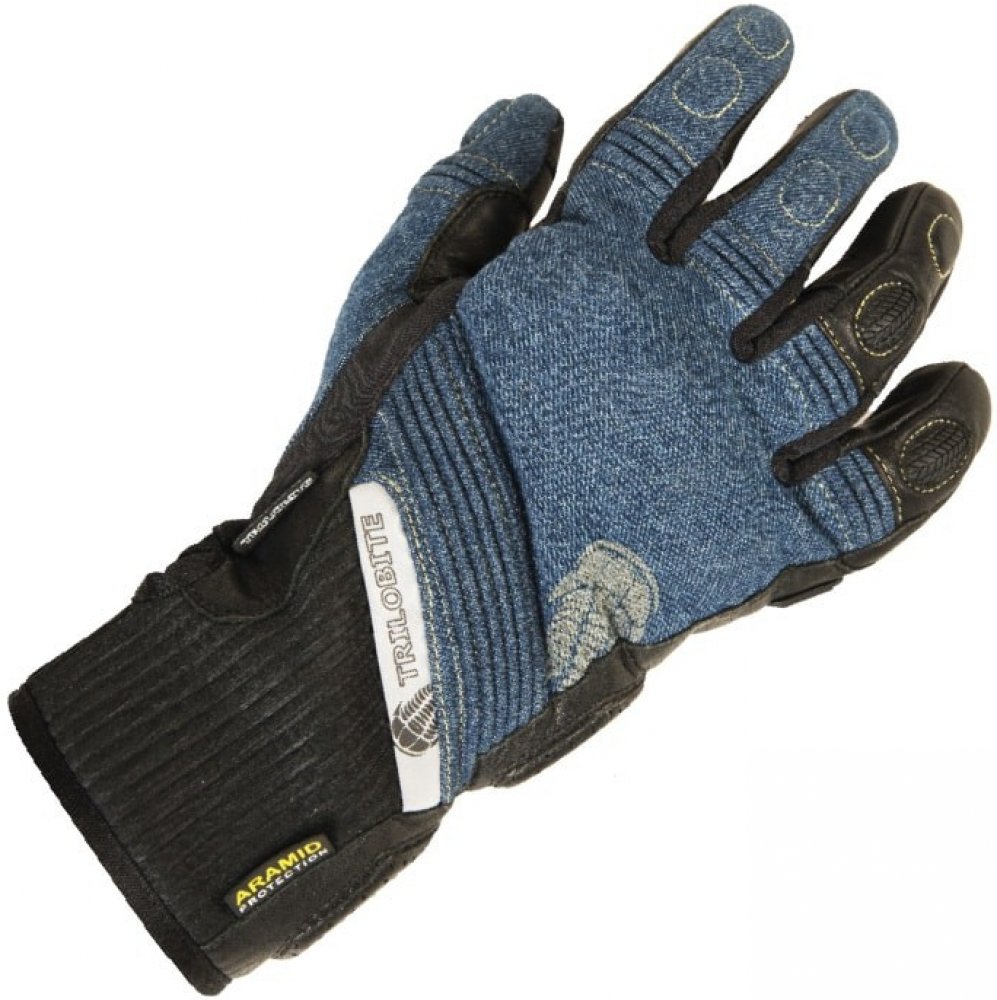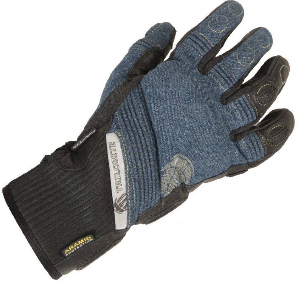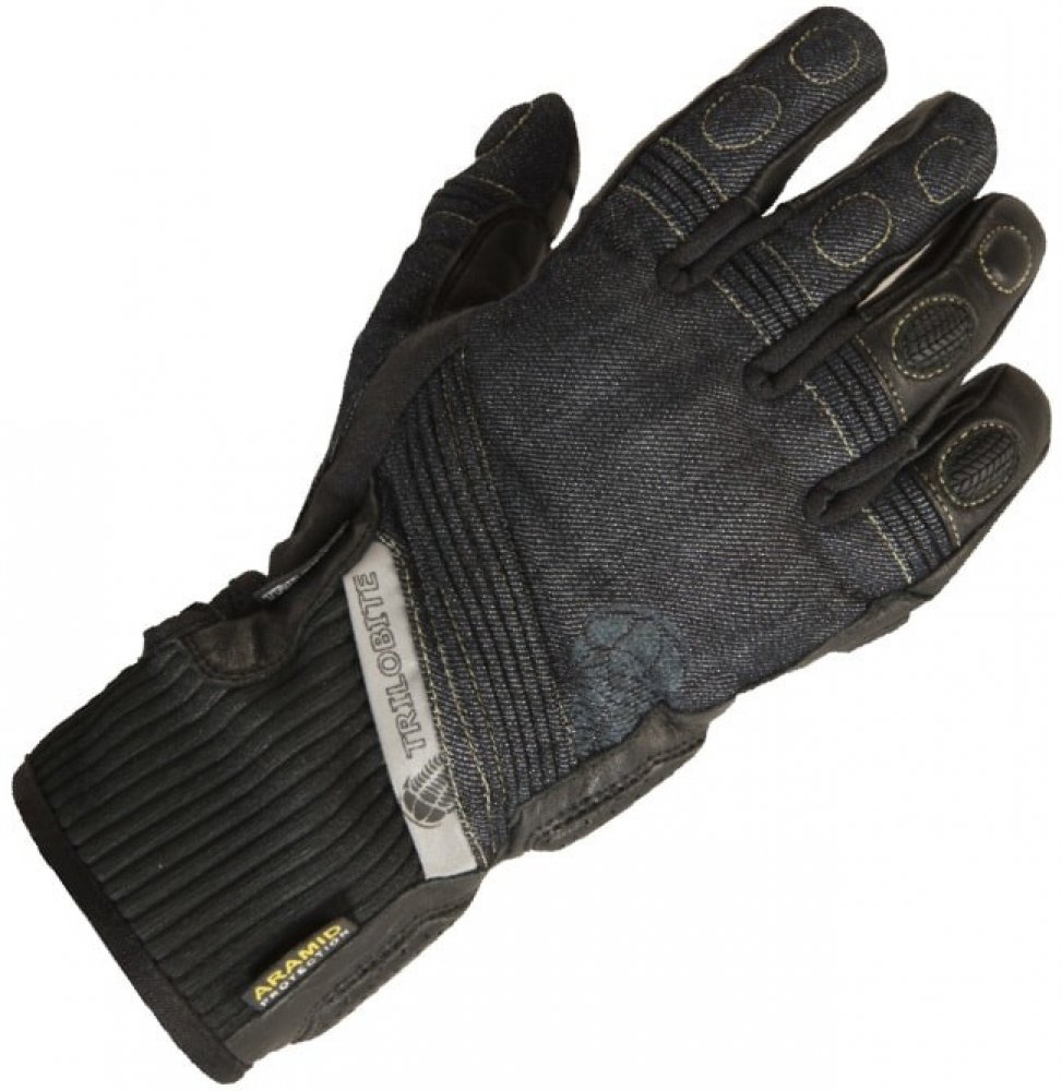 Moderní jezdecké rukavice jsou navrženy tak, aby ladily s oblíbenými džínami a bundami z hlediska jejich funkčnosti, bezpečnosti a pohodlí. Vrchní část rukavic je vyrobena z džínoviny a dlaně z kůže. Rukavice jsou plně podšívané aramidovými vlákny, které poskytují maximální odolnost proti oderu.Všetky klouby a nárazové zóny jsou chráněny měkkými nebo tvrdými chrániči. Různé strečové panely na prstech a zápěstí zajišťují pohodlí. Mezi prsty jsou malé pružné a prodyšné klíny, které zajišťují pružnost a ventilaci. Reflexní řemínek s logem na zadní straně zvyšuje viditelnost jezdce na silnici. Zápěstní páska je vyrobena z pružného neoprénu se suchým zipem pro připevnění rukavic podle potřeby. Špičky prstů jsou připraveny na dotykovou obrazovku, takže jezdci mohou snadno ovládat mobilní telefon nebo GPS aniž by museli složit rukavice.