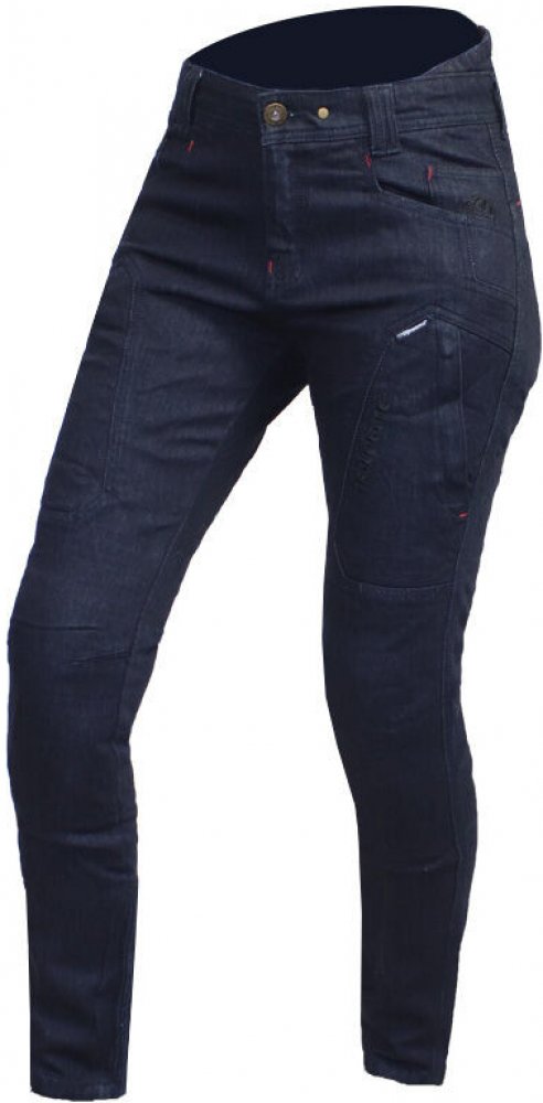 Tyto kalhoty jsou vyrobené z nového materiálu TRI-STRETCHER denim, který vzniká spojením vláken Dyneemy, Elastanu, Polyesteru, Nylonu a bavlny. Jsou lehké, vzdušné, příjemné a navíc mají schopnost odolat oděru dle EN 17092:3-2020 i bez vrstvy Kevlaru. Dyneema navíc poskytuje velkou odolnost vůči žáru.