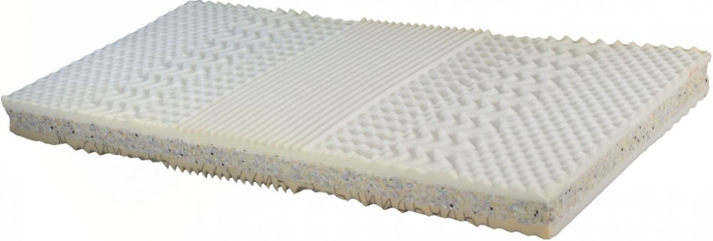 Sedmizónová sendvičová matrace je vyrobena z osvědčených polyuretanových pěn. Střed jádra tvoří deska z pojeného lehčeného polyuretanu, který zaručuje zvýšenou nosnost této matrace. Obě strany jádra matrace jsou z kvalitní PUR pěny se sedmizónovou profilací, která zajišťuje uvolnění svalstva během spánku.
