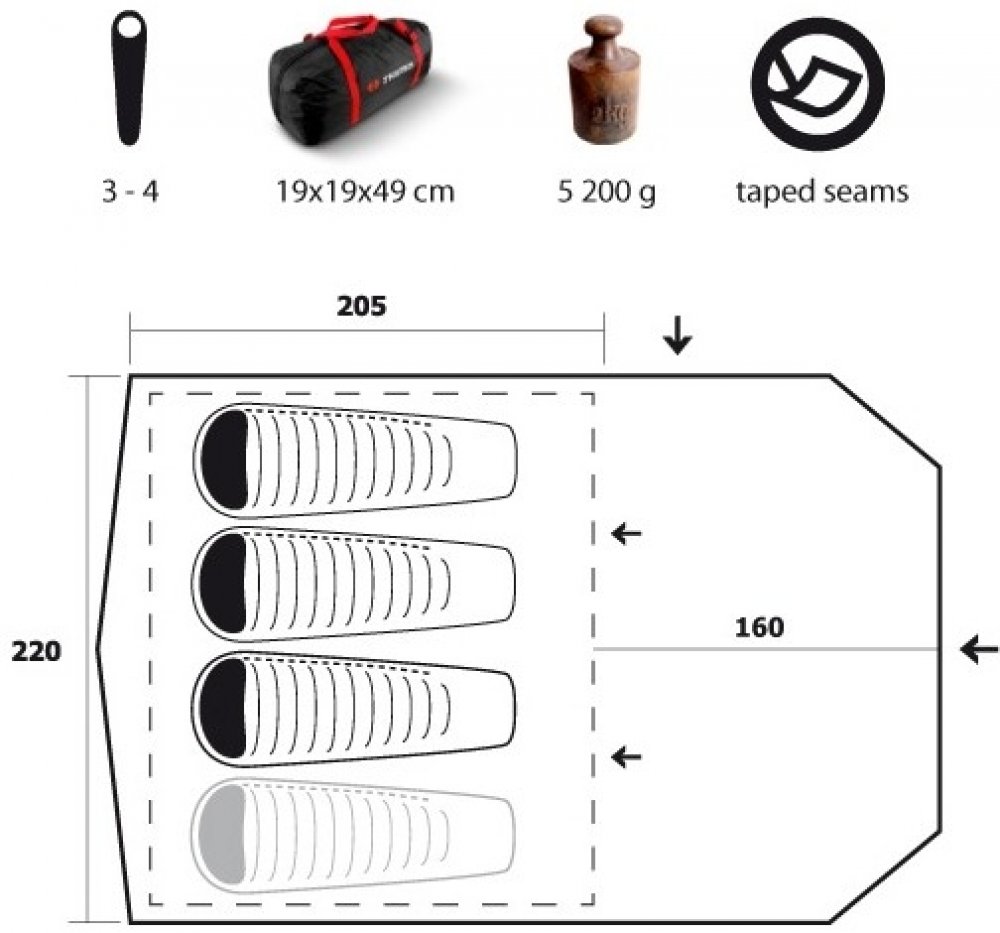 Kempingový, turistický stan Trimm Focus pro 3–4 osoby. Stan má velkou a dobře přístupnou předsíňkou, kterou lze otevřít ze dvou stran. Prostor může být využit pro zavazadla, uskladnění kol apod. Stan je vhodný také pro rodinné dovolené. Výhodou stanu je dostatečný komfort a variabilita použití. U vnitř stanu jsou po stranách dvě malé kapsičky na drobnosti.