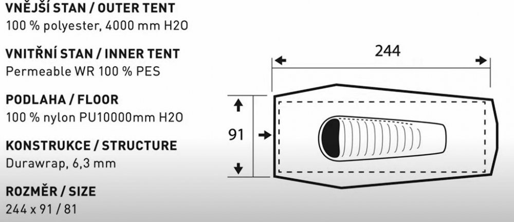 1.8 kg 244 cm 10000 mm 4000 mm 91 cm 81 cm 1 2 Trimm turistické s jednou ložnicí tunelové