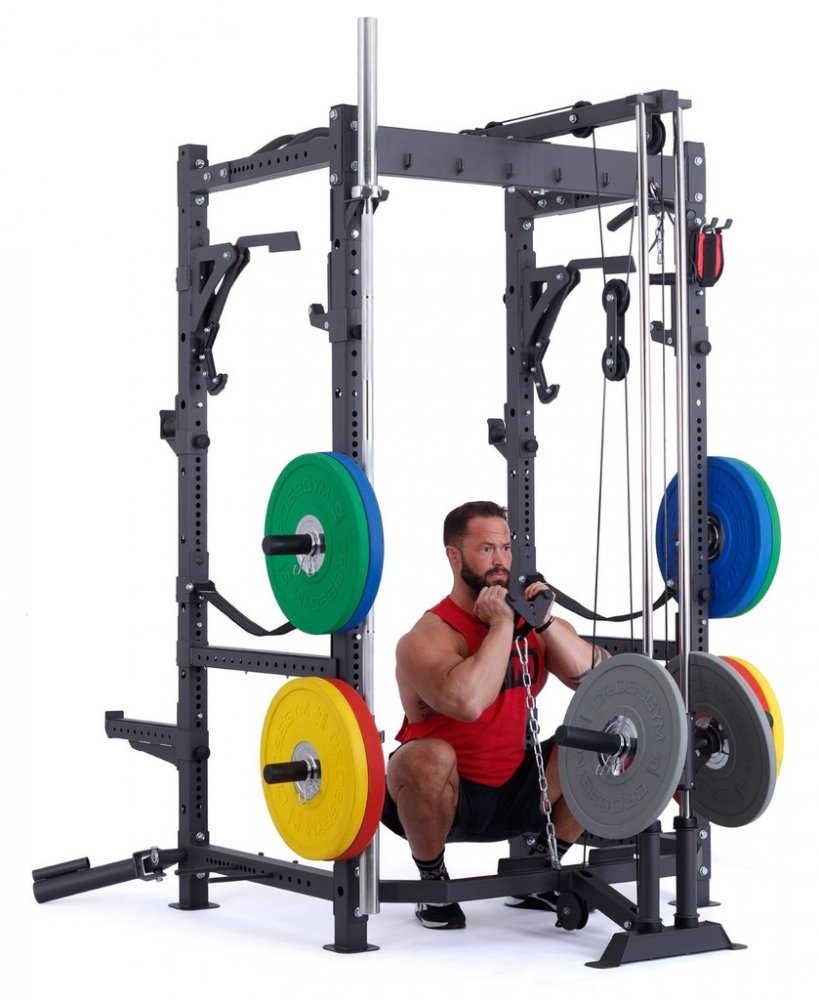 Robustní posilovací klec na dřepy s hrazdou a příslušenstvím