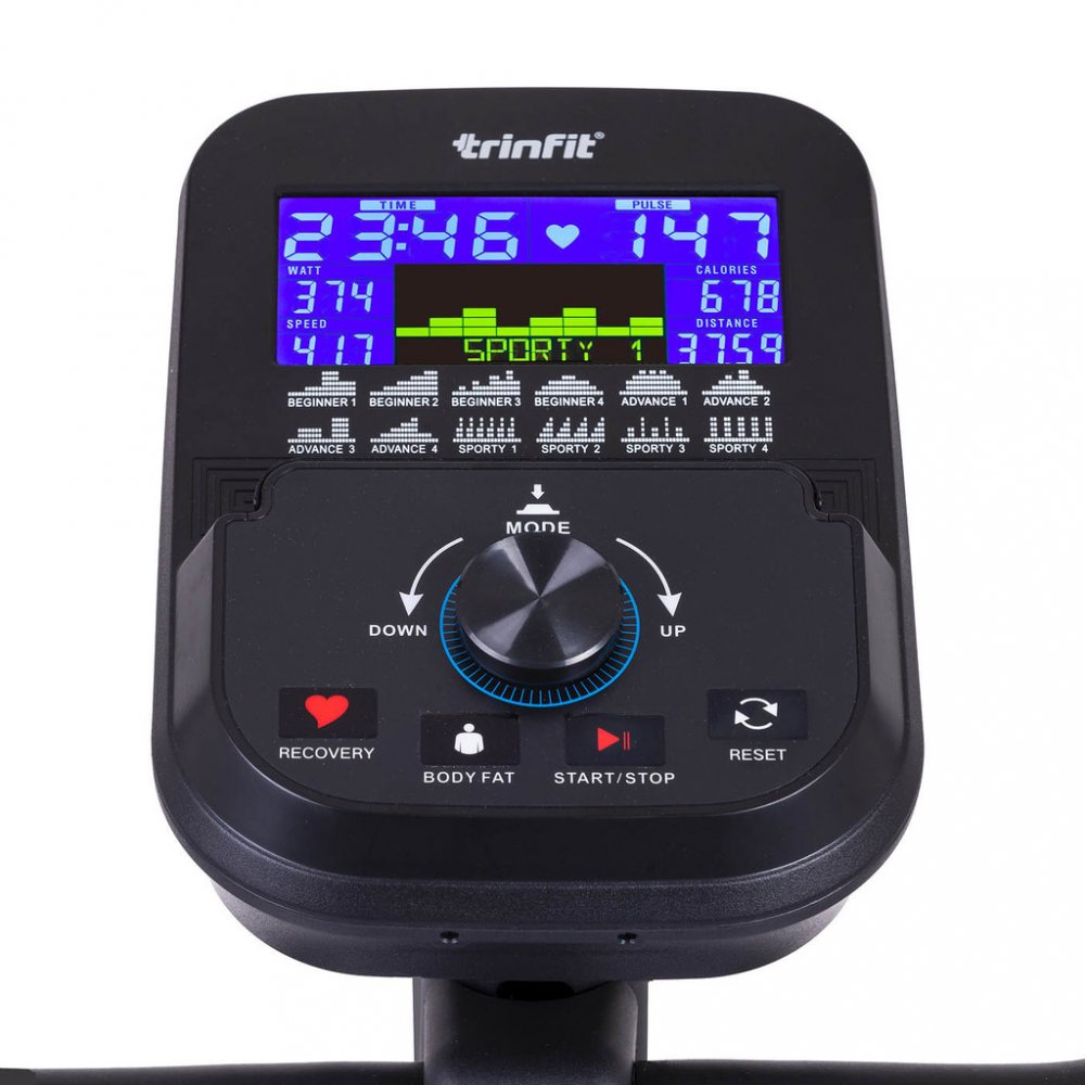 Trinfit 94 cm 53 cm 142 cm 36 kg 150 kg magnetické 9 kg Externí síťový adaptér 18 čas, rychlost, kalorie, tep, WATTY, 18 programů, HRC program