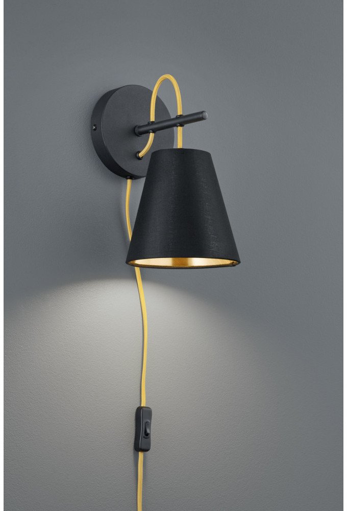 Moderné farebne prevedenie čiernej so zlatou je to práve pre výrazný doplnok do interiéru. Svietidlo krásne vynikne adodá interiéru ten správny šmrnc. Vhodné aj ako osvetlenie spálne nad nočné stolíky. Svietidlo je možne napojiť na priamo do elektriny alebo pomocou káblu do zástrčky.