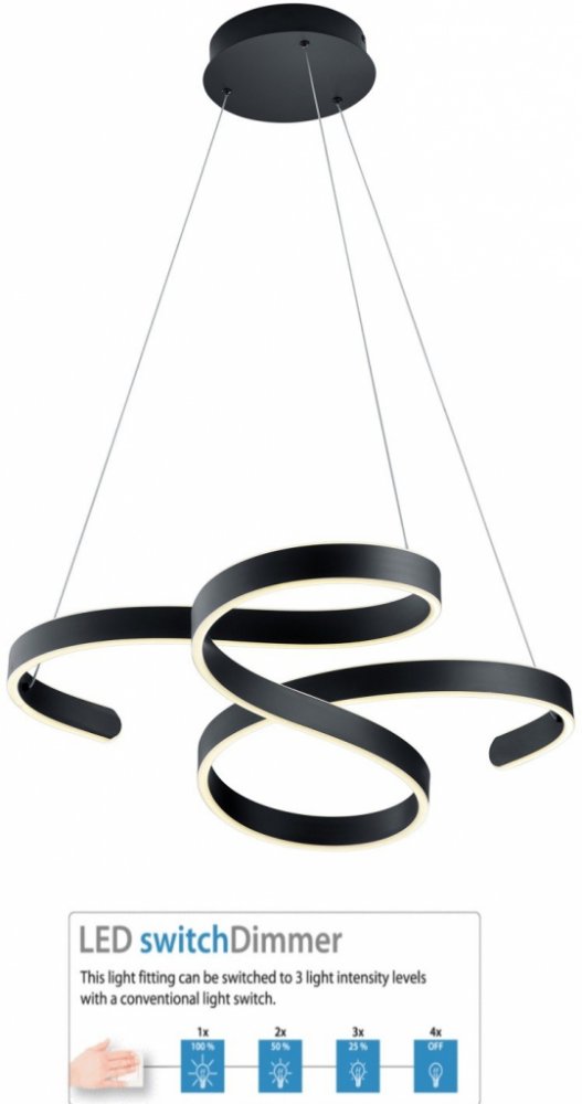 Trio Leuchten černá kov lustry a závěsná svítidla 3000 K integrovaný LED zdroj 52 W IP20 A 150 cm 2.36 kg 72 cm 68 cm