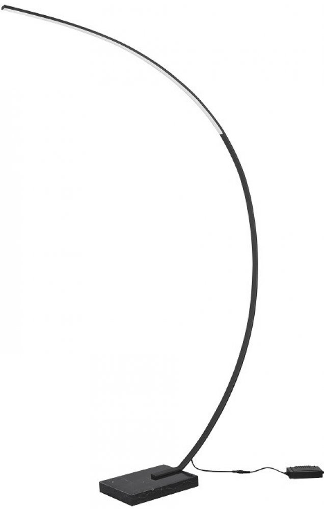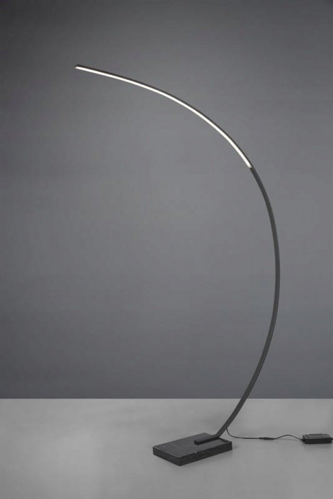 Moderní oblouková stojací lampa Trio BANGKOK s integrovaným LED zdrojem je vyrobena z černého matného kovu. Tato stojací lampa se svým minimalistickým provedením hodí do obytných místností, ve kterých chcete osvětlit pohodlné křeslo, sedačku nebo jiné místo pro relaxaci. Stane se kvalitním svítidlem i designovým doplňkem, který perfektně vynikne v moderním futuristickém interiéru.