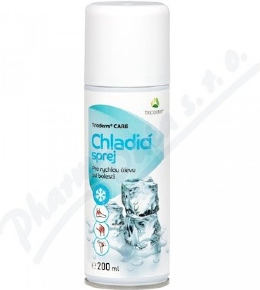 Trioderm CARE Chladicí sprej 200ml Trioderm CARE Chladicí sprej - Zdravotnický prostředek pro rychlou úlevu od bolesti. Pro celou populaci, pro děti od 3 let věku a pro diabetiky. Trioderm CARE Chladicí sprej je chladící sprej pro rychlou úlevu od bolesti spojené s pohmožděním svalů, podvrtnutím kloubů, svalovými křečemi a jinými zraněními v důsledku nárazu, pádu nebo podvrtnutí a pro zmírnění bolesti při drobných zákrocích, jako je např. venepunkce před zavedením kanyly nebo katetru do žíly. Obsahuje nízkovroucí látky působící na postiženém místě jako lokální anestetikum. Vytváří okamžitý chladivý účinek v místě ošetření, zmírní na 3 minuty pocit bolesti a uvolní postižené místo. Určený účel Přechodné zmírnění bolesti při pohmoždění svalů, podvrtnutí kloubů, svalových křečích a jiných zraněních v důsledku nárazu, pádu nebo zvýšené sportovní zátěže a zmírnění bolesti při drobných zákrocích, jako je např. venepunkce před zavedením kanyly nebo katetru do žíly. Indikace Bolesti spojené s pohmožděním svalů (Musculus contusus), podvrtnutím kloubů (luncturam distorsio), se svalovými křečemi (Musculus distentio) a jinými menšími sportovními zraněními v důsledku nárazu, pádu nebo zvýšené zátěže (Athletae effectus auctus) a bolesti provázející drobné zákroky, jako je např. venepunkce před zavedením kanyly nebo katetru do žíly. Kontraindikace Nestříkat delší dobu, ani z kratší vzdálenosti, aby nedošlo k tvorbě omrzlin. Nepoužívejte na obličej, krk, citlivé oblasti těla nebo otevřené rány. Nepoužívat v případě alergické reakce na některou z obsažených složek. Nepoužívat pro děti do 3 let. Použití u těhotných žen a v době kojení konzultovat s lékařem. Zamýšlené místo aplikace Neporušená kůže na postižených místech těla. Doba trvání Přechodný účinek do 3 minut. Doporučená dávka, návod k použití Trioderm CARE Chladicí sprej se nanáší stisknutím rozprašovače na kůži nad postiženým místem ze vzdálenosti 15 cm od povrchu těla, aplikuje se 2 - 3x opakovaným nástřikem po dobu 5 vteřin. Zvláštní požadavky na bezpečnost pro určený účel U přecitlivělých osob může způsobit alergickou kožní reakci. V případě začervenání ošetřeného místa, vzniku omrzliny nebo puchýře po nadměrném použití spreje a při pochybnostech vždy vyhledat lékaře. Chraňte oči před zásahem spreje. Složení Trioderm CARE Chladicí sprej 200ml Butane, Propane, Isobutane. Balení Trioderm CARE Chladicí sprej 200 ml. Další upozornění Přípravek Trioderm CARE Chladicí sprej 200ml je registrovaný jako zdravotnický prostředek.