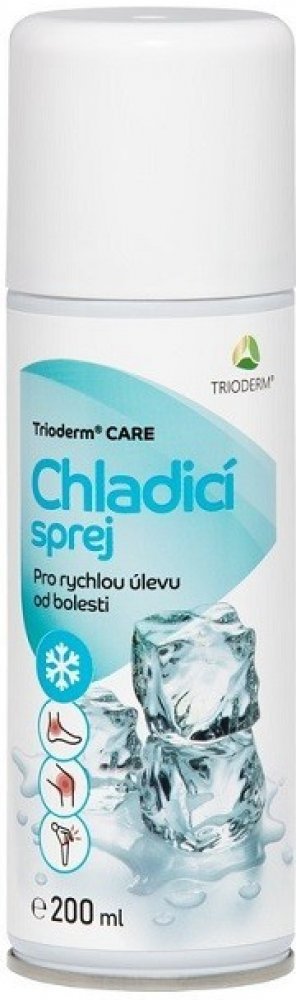 Trioderm CARE Chladicí sprej 200ml Trioderm CARE Chladicí sprej - Zdravotnický prostředek pro rychlou úlevu od bolesti. Pro celou populaci, pro děti od 3 let věku a pro diabetiky. Trioderm CARE Chladicí sprej je chladící sprej pro rychlou úlevu od bolesti spojené s pohmožděním svalů, podvrtnutím kloubů, svalovými křečemi a jinými zraněními v důsledku nárazu, pádu nebo podvrtnutí a pro zmírnění b...