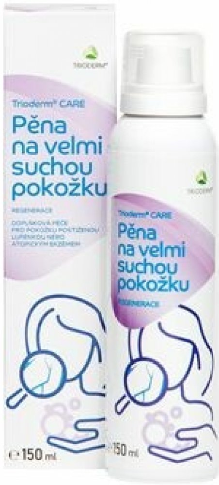 Pěna je vhodná na ošetření velmi suchých míst těla jako jsou lokty, kolena, chodidla nebo paty. Po ošetření se pokožka stává jemnější, přítomné látky suchá místa na pokožce ošetřují a dodají potřebnou vlhkost a vláčnost. Komplexní účinek obsažených látek přináší úlevu, zklidní a zmírní postižení.Neobsahuje barviva, neobsahuje parafínový olej, jemná parfemace bez obsahu alergenů. Přirozenou ochrannou funkci pokožky podporuje pH v kyselé oblasti.Dávkování a způsob užitíPřed použitím dobře protřepejte. Pěnu aplikujte stiskem rozprašovače na ruku nebo postižené místo, pohybem ruky zlehka rozetřete. Pěnu naneste nejlépe hned po sprchování nebo mytí, dokud je kůže lehce vlhká. Ponechte pěnu vstřebat do pokožky, nesmývejte. Ošetření suchých míst opakujte podle potřeby několikrát denně. Použití 2x denně je obvykle dostačující. z hygienických důvodů po použití opláchněte rozprašovač tekoucí horkou vodou a přikryjte ochranným víčkem.SloženíTrioderm CARE Pěna na velmi suchou pokožku obsahuje Aqua, Oenotherabiennis oil, Hydroxyethyl urea, Butane, Glycerin, Caprylic/Capric triglyceride, Prunus armeniaca kernel oil, Ceteareth-25, Cetearyl alcohol, Sodium lactate, Propane, macadamia ternifolia seed oil, CI2-15 Alkyl benzoate, Panthenol, Lactic acid, Isobutane, Tocopheryl acetate, Phenoxyethanol, Xanthan gum, parfum, Ethylhexylglycerin.Produkt obsahuje 8 % rostlinných olejů (pupalkový olej, olej z meruňkových jader a makadamiový olej) a 10 % Hydrovance (derivát močoviny).