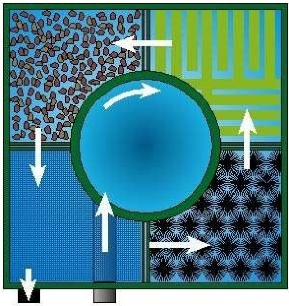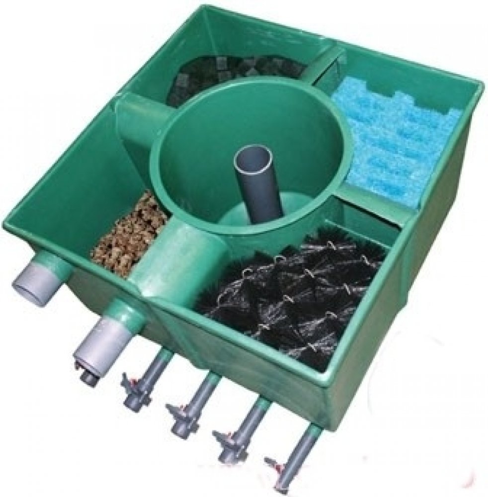 U této položky je účtována individuální doprava! Složení filtrační sady pro jezírkové filtrace Tripond center vortex se za roky prodeje těchto filtrů vypracovalo téměř k dokonalosti. Pořadí filtračních médií v jednotlivých komorách není striktně dáno, ale je dobré se řídit našimi doporučeními. První komora by měla být vyplněna filtračními kartáči, které zachytí především mechanické nečistoty, které neulpěly ve vortexu. V následující komoře se nachází japonská rohož (matala), dále biokuličky v pytlích a v poslední komoře filtru se nachází biomolitanové kousky taktéž uložené v pytlích pro lepší manipulaci při čištění filtru. Zcela ideálně sestavený filtr obsahuje ještě plástvový předfiltr, který se umisťuje do vortexové komory. Složení jednotlivých komor jsme schopni upravit na základě Vašich přání. Složení komor: 1. komora - 8x filtrační kartáč 2. komora - japonská rohož - matala 3. komora - 500 ks biokuliček + 1 pytel 85x50 cm 4. komora - 40l kostek biomolitanu + 2 pytle 60x45 cm