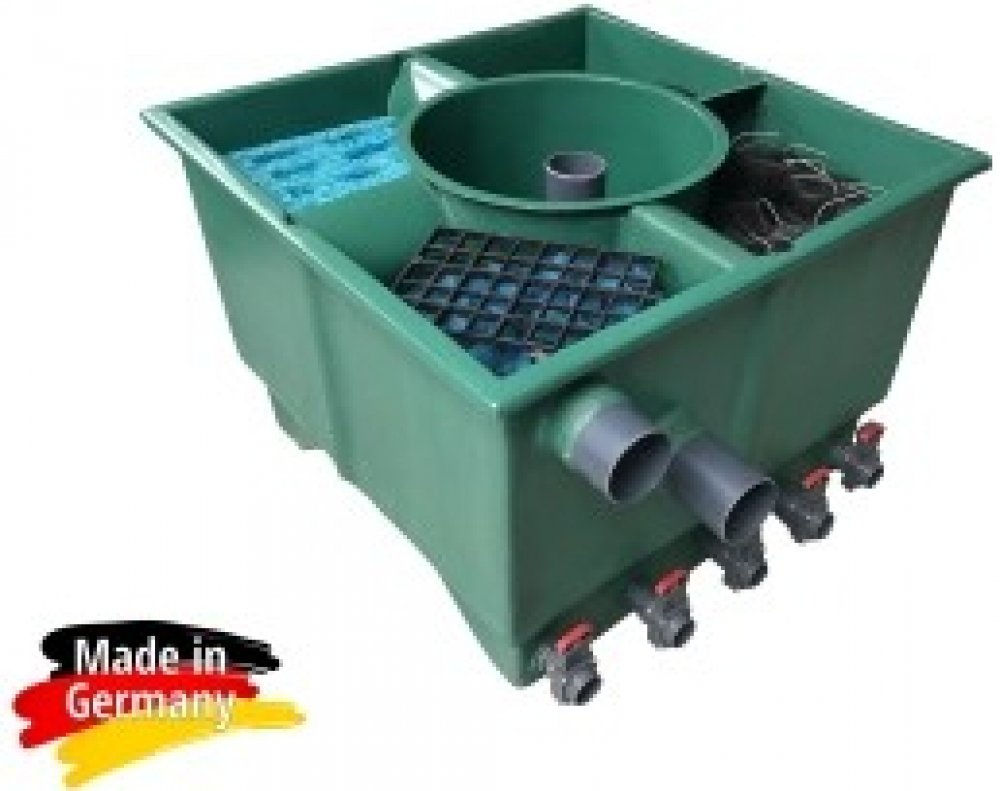 Už na první pohled je vidět, že filtry pro zahradní jezírka od firmy Tripond nejsou žádné hračky. Konkurenční výrobky mají nepoměrně menší velikost, i když uvádějí stejný filtrační výkon, praxe však brzy ukáže, kde je pravda. Ve skutečnosti je na jezírkovém filtru nejdůležitější biologická filtrační plocha pro usídlení filtračních bakterií. Čím větší je objem filtračních náplní, tím je lepší voda v zahradním jezírku.Tato přímá úměrnost se nedá ničím nahradit ani ošidit. V malých jezírkových filtrech dochází k neustálému ucpávání filtračních medií, jezírkový filtr přeteče nebo je už neprůchodný, a tím pádem nefunguje, musí se vyčistit a to ubližuje filtračním bakteriím. Vás pochopitelně asi nebude bavit pořád dokola čistit filtr místo relaxace u jezírka. Proto u filtru pro jezírko platí, že nikdy není dost velký. Velmi důležitá ve filtraci na jezírko je také tzv. mechanická část - ta má za úkol zbavit vodu všech hrubších nečistot před vstupem do biologické části jezírkového filtru. V těchto filtrech toto zajišťuje vortexová komora, je to jednoduše odstředivka, ve které vysedimentují všechny těžší částice, protože vstup do komory je níže než přepad do další komory. Takto dokáže odstředivka zachytit i velmi jemný kal a bahno, což třeba štěrbinový nedo sítový filtr neumí.Nepostradatelné v kvalitních filtrech je také odkalování každé komory samostatně, navíc tyto filtry mají komory s vyspádovanými dny, a proto se odkalují beze zbytku. Ve filtrech pro jezírka s rovným dnem tohoto výsledku nemůžete docílit. O filtrech pro zahradní jezírka Tripond Centrvortex lze bez nadsázky prohlásit, že jsou profesionální, každý z nich je zkoušen na vodotěsnost a má výrobní číslo.