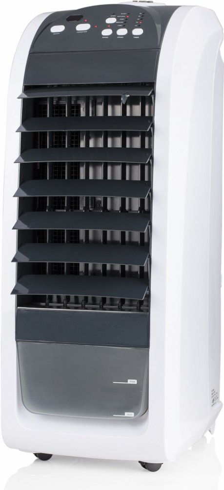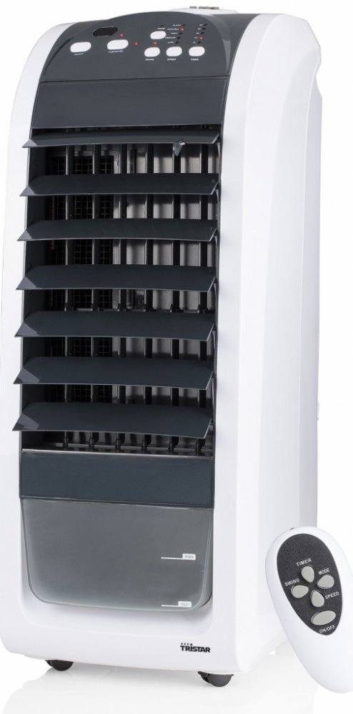 Ochlazovač vzduchu Tristar AT-5450 Ochlazovač vzduchu Tristar AT-5450 je ochlazovací jednotka se speciální technologií ochlazování pomocí vody. Její výhodou jsou nízké pořizovací náklady a snadná přemístitelnost, která Vám umožní ochlazovat více prostor během dne. Ochlazovač nepotřebuje odbornou montáž, stačí ji zapojit do elektrické sítě a zapnout. Ochlazovače jsou domácí ventilátory s funkcí chlazení pomocí rozprašování vodní páry. Ochlazení je tedy formou snížení pocitové teploty, kdy na vás je foukán vzduch se studenou vodní párou. Nejedná se o mobilní klimatizace. V čem Tristar AT-5450 vyniká? 1. Nízké pořizovací náklady a snadná přemístitelnost Mobilní ochlazovač vzduchu Tristar AT-5450 je ochlazovací jednotka se speciální technologií pocitového ochlazování pomocí vody. 2. Dálkový ovladač Ovládání jednotky je možné provádět přímo na přístroji ovládacím panelem nebo pro pohodlnější obsluhu a více funkcí se jednotka ovládá pomocí dálkového ovladače. 3. Další vlastnosti Na plně dotykovém ovládacím panelu lze mimo jiné nastavit časovač až na 8 hodin. Další vlastnosti: dálkový ovladač pro pohodlné ovládání 3 režimy ventilátoru objem nádoby na vodu 4,5 l madlo a kolečka s brzdou vypínač a kontrolka pro funkci oscilace