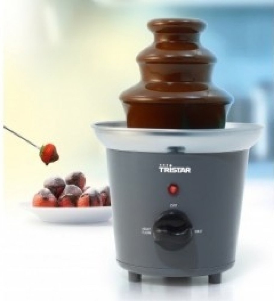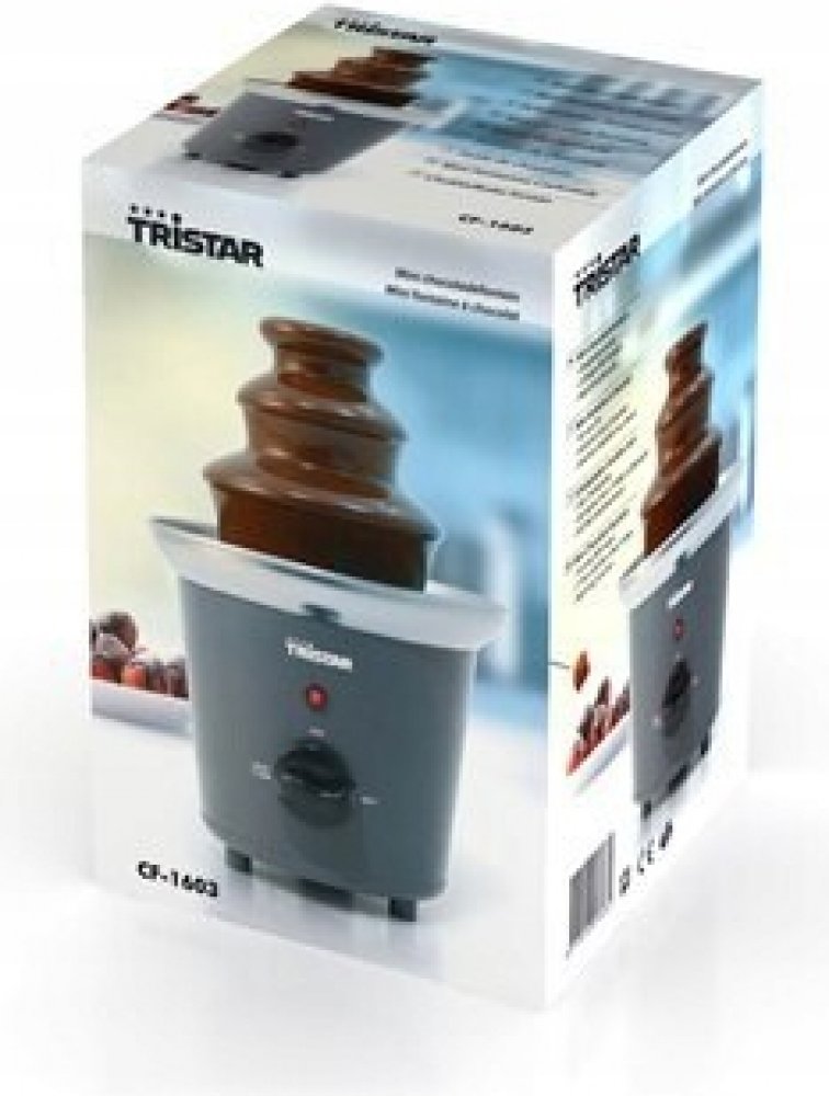Fontána na čokoládu TRISTAR CF-1603 Čokoládová fontána zpestří oslavy malých členů rodiny, přidat se mohou i starší mlsouni. Tato čokoládová fontána by neměla chybě na žádné párty či domácí oslavě! Tělo fontány je v nerezovém provedení s funkcí udržování teploty. Technické vlastnosti: Příkon 32W - 230 V Funkce udržování teploty Nerezové provedení fontány, plastový spodek. Výška fontánky 23 cm