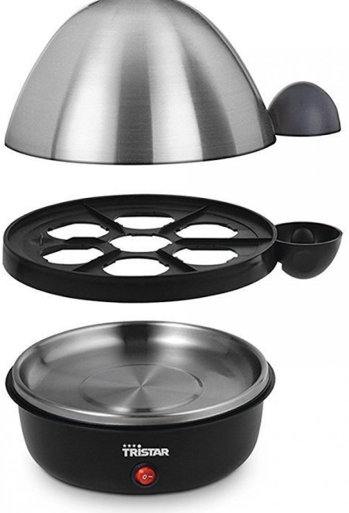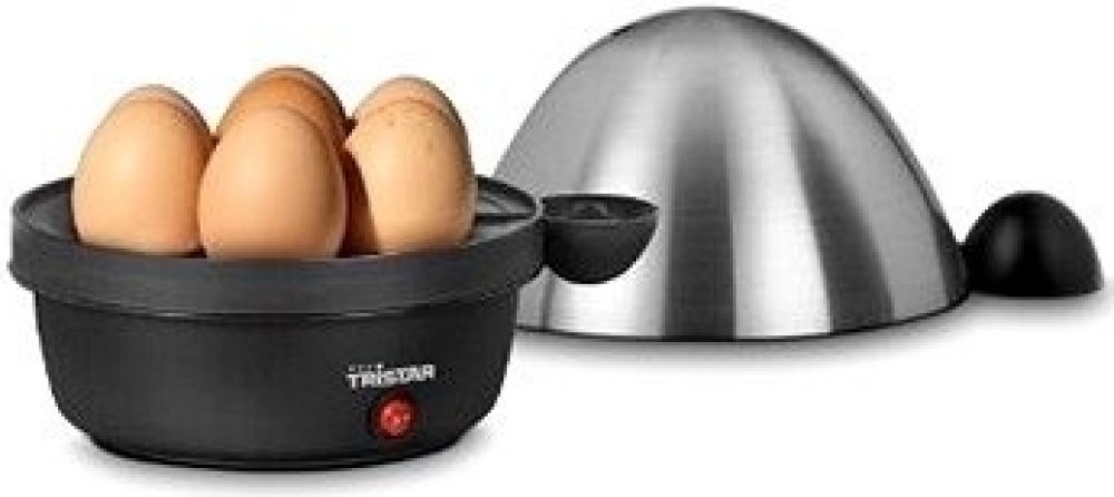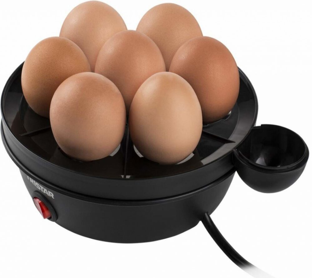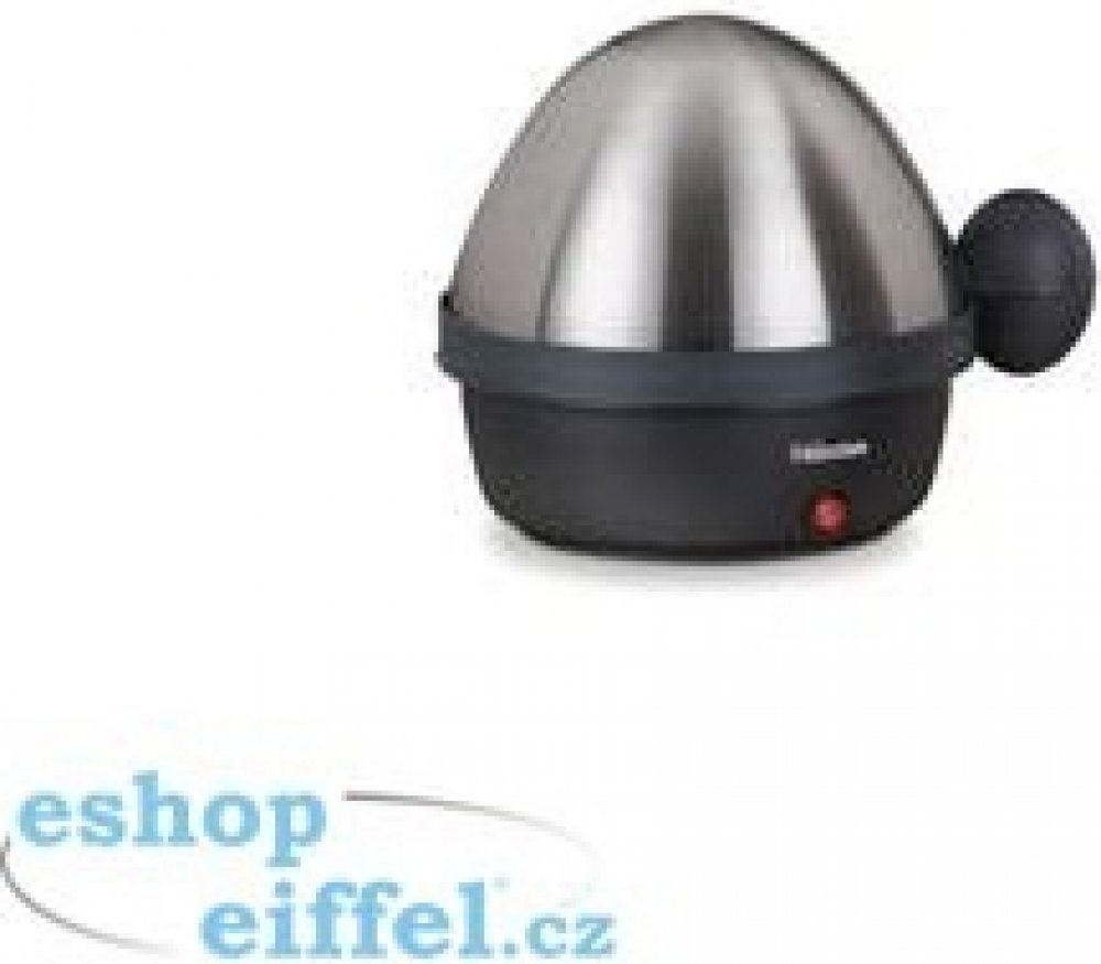 Vařič vajec na 1 až 7 vajíček najednou. V černé barvě, s nerezovým víkem s výpustí páry, je vybaven přepínačem ON -zapnuto/OFF vypnuto. Výkon vejcovaru je 350 W. Podložka na vodu je z nerezové oceli, součástí balení je kalíšek na vodu, sloužící jako doměrka s jehlou na propichování vajec. Podnos na 1-7 vajec je výjimatelný, což zajišťuje snadné čistění. Pokud vaříte vejce často, výrobek v kuchyni oceníte. Umístění v testu kvality.
