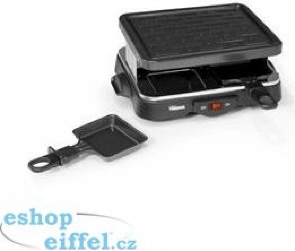 Na grilu na raclette Tristar RA2949 připravíte ty pravé dobroty! Péct je můžete na grilovací plotně (cca 19,5 x 15 cm) nebo na 4 individuálních raclette pánvičkách (cca 7 x 6 cm). S tímto kuchyňským spotřebičem propadnete zdravému vaření. Vhodné pro 4 osoby. Snadná údržba a uložení. Odnímatelný grilovací plát. Rozměry: cca 27,5 x 19 cm.