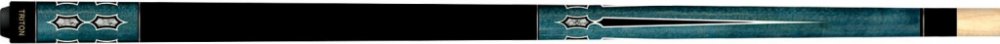 Kulečníkové tágo Triton S3 model číslo 3 má spodní část v tyrkysové barvě zdobené geometrickými obrazci. Kolem černě lakované rukojeti jsou stříbrno-černé kroužky.