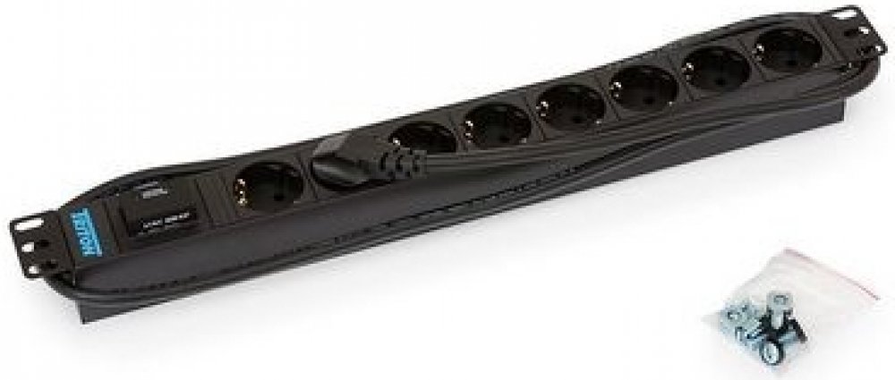 RAB-PD-X07-A1 - 19" rozvodný panel 1U 8x230V, varistorová bleskojistka