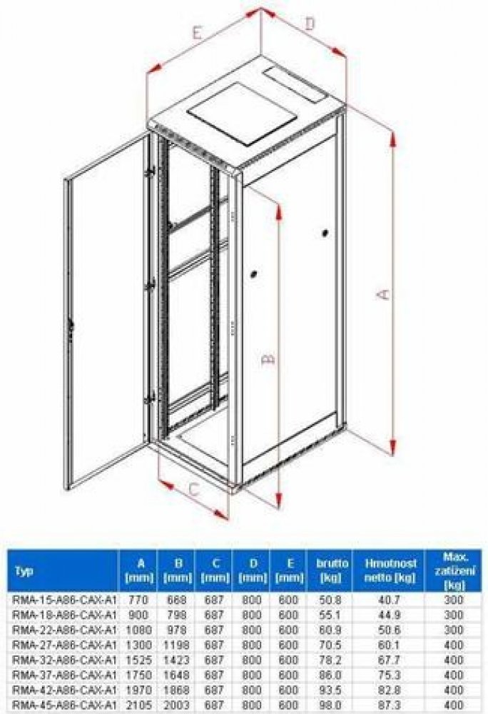 • tyto rozvaděče jsou určeny pro instalaci datových a telekomunikačních zařízení a sítí