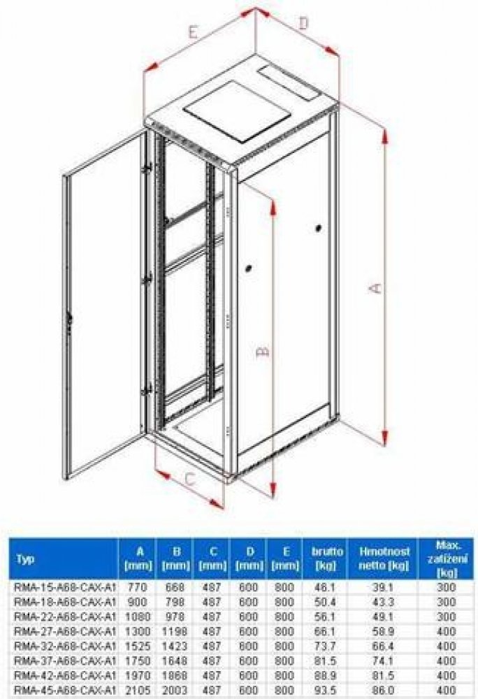 45 U a rozměry 600 x 800 mm je určen pro instalaci datových a