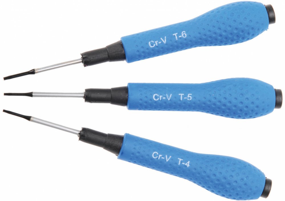pro práci s mobilními telefony všechny šroubováky jsou magnetické s rukojetí z měkkého plastu délka 140 mm rozsah dodávky: přesný šroubovák, T-Star (pro Torx) T4 přesný šroubovák, T-Star ( pro Torx) T5 přesný šroubovák, T-Star (pro Torx) T6