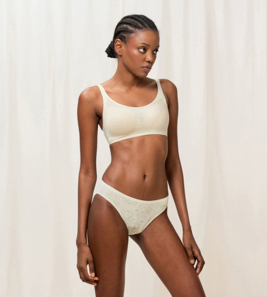 Je vytvoředa z jemné 4D pružné krajky a se 4D vycpávkami, které se dokonale přizpůsobí Vašemu tělu. Díky novým velikostem najdete ten správný střih právě pro Vás.* bez kostic se 4D pružnými vycpávkami* boční části s žerzejovými lemováním, který utváří prirozený efekt push-up* přední část je pokrytá pružnou 4D krajkou* pohodlná široká ramínka* tento produkt je certifikovaným výrobkem podle STANDARD...
