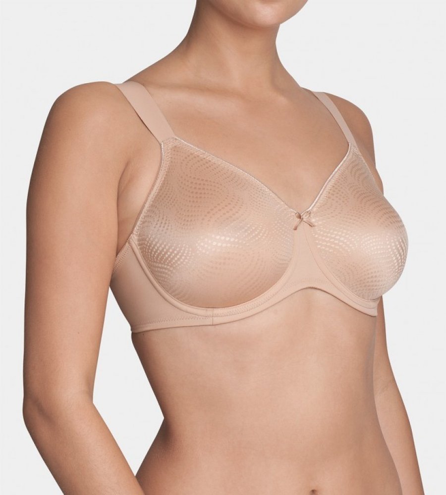 Nejprodávanější zmenšující podprsenka Triumph s kosticí, měkké košíčky bez jakékoliv výztuže, speciální ramínka "soft feel" jsou vyrobena z příjemné měkké počesané gumy a v náramenici jsou rozšířená pro maximální pohodlí. Podprsenka je zdobená jemnými krajkovými vsadkami kolem výstřihu a mezi košíčky. Díky svému speciálnímu střihu dokáže opticky zmenšit poprsí o jednu až dvě velikosti. Podprsenka je velice pevná a krásně tvaruje poprsí, vyrábí se ve velikosti košíčků C až H v obvodech pod prsy 75 až 95. Materiálové složení: 43% Polyester, 40% Polyamid a 17% Elastan