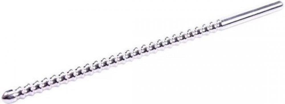 Triune Dip Stick Ribbed - vroubkovaný dilatátor do močové trubice z nerezové oceli o průměru 4 mm.