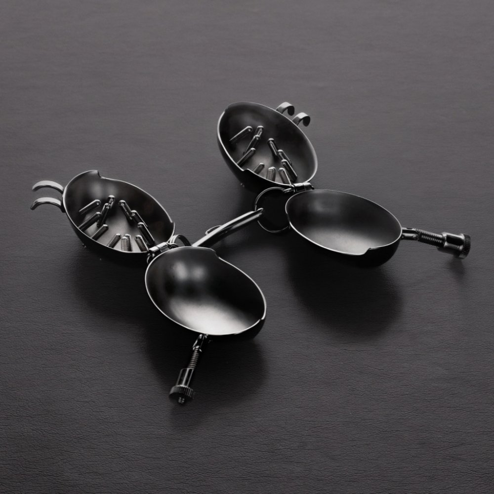 Tato brutální hračka vdechne život vašim CBT fantaziím. Nahatovač a drtič varlat zároveň, prostě kombo! Zašroubujete je tohoto neúprosného zařízení a udělte jim trest, jaký si zaslouží. Každá skořápka má 13 nebezpečných šroubků a součástí balení jsou také 2 visací zámky pro nemožnost úniku. Podlehněte extrémní hře!