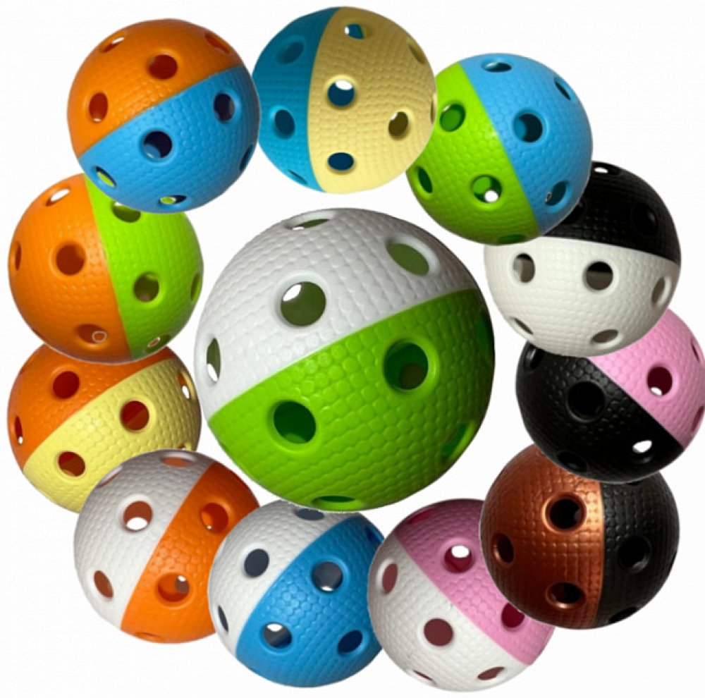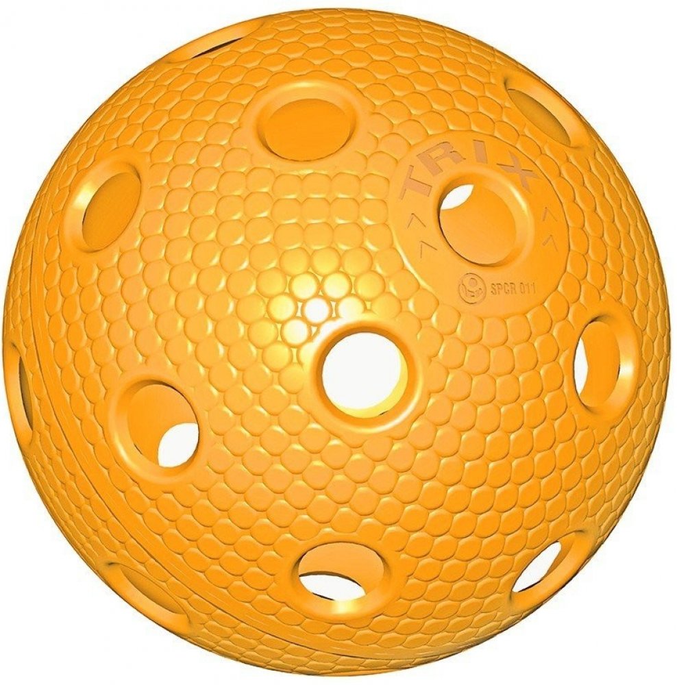 Florbalový míček TRIX - dvoubarevná, vyrobená z plastu splňuje všechny požadavky pro vrcholový florbal.