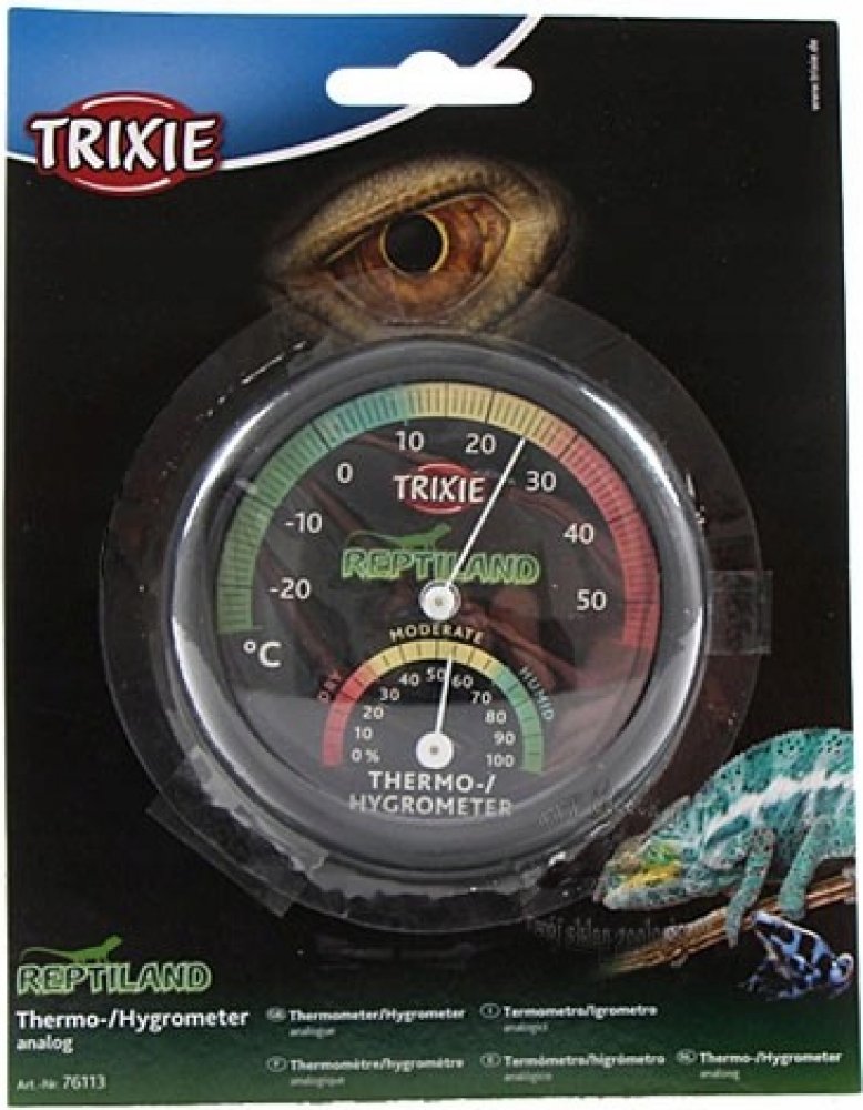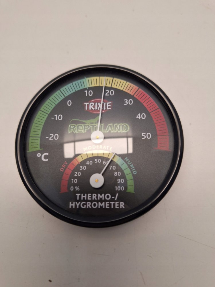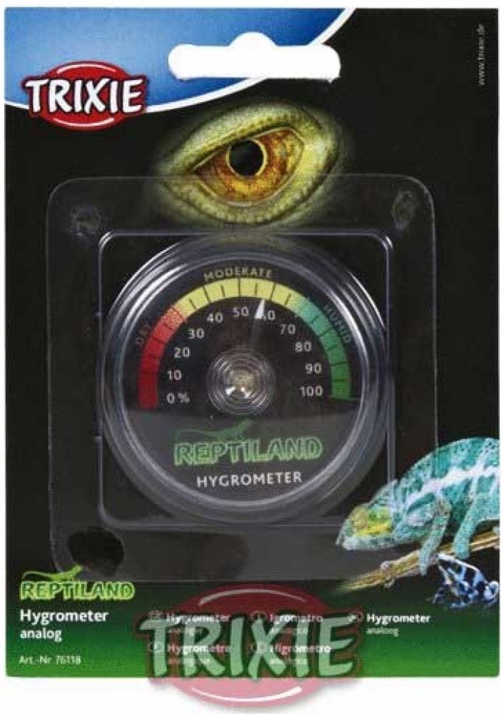 Analogový termometr/hydrometr - pro přesné určení teploty a vlhkosti v teráriu - rozsah od -25° C do 55° C (0°-110° Farenheit) a 0 až 100 % vlhkosti - jednoduchá montáž díky nálepkám na zadní části - nemontujte přímo na nebo vedle zvlhčovače vzduchu, anebo vedle tepelného zdroje